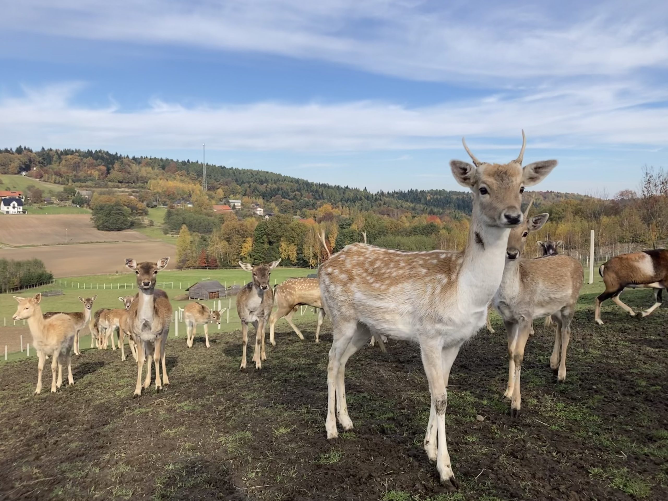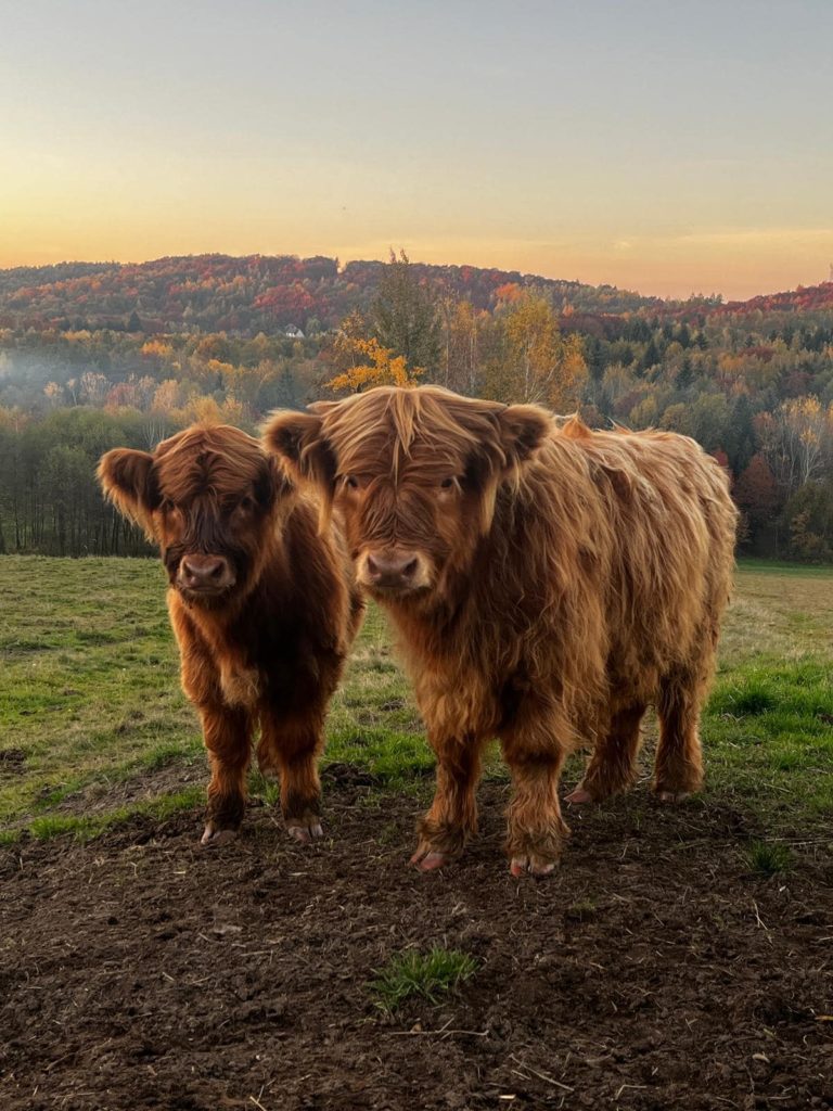 - Owieczki i szkockie kudłacze – zwierzęta z pastwiska.