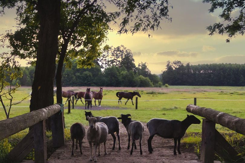 Gościnna Zagroda położona jest na terenie 10 ha, na których malowniczo położony jest modrzewiowy dworek – zwany domem z bali w którym odbywają się warsztaty i imprezy biesiadne. Do Państwa dyspozycji są także dwa stawy w tym jeden aż 2 hektarowy z wyspą, pomostem rybackim i dwoma prywatnymi plażami. Mamy też wóz taborowy do wycieczek zorganizowanych, sanie do organizacji kuligów, bryczki i karetę. Hotelik – 8 pokoi z łazienkami plus kuchnia z jadalnią. Do warsztatów edukacyjnych – kuźnię z kompletnym wyposażeniem oraz siodlarnię. Plac zabaw w formie grodu rycerskiego. Hodujemy wszystkie gatunki zwierząt gospodarskich występujące w Polsce. Mamy też stadko kucyków szetlandzkich i walijskich kózki, owieczki, króliczki, dzik. Ptactwo domowe: kurki, kaczki, gąski, indor, perliczki, bażanty, pawie.