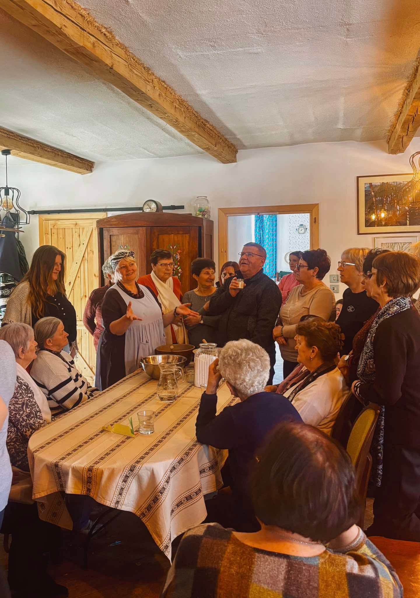 Po kilku latach dośwaidczen jako gospodarstwo agroturystyczne oraz wsłuchania się w potrzeby otoczenia, postanowiliśmy dzielić się tym, co nam bliskie – chlebem wypiekanym na zakwasie, ziołami zbieranymi na łące, historią oraz folklorem, który jest tutaj wciąż żywy. Chcemy ,aby każdy kto nas odwiedzi mógł dotknąć i poczuć wiejskiego życia (karmić drób, sprzątać zagrody, obserwowac gęsi i kaczki), poznać smak prawdziwego jedzenia i usłyszeć przy ognisku lub kominku opowieści dawnych obyczajach.